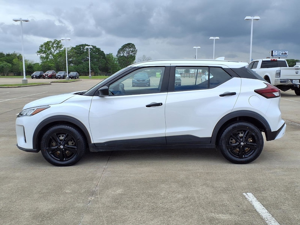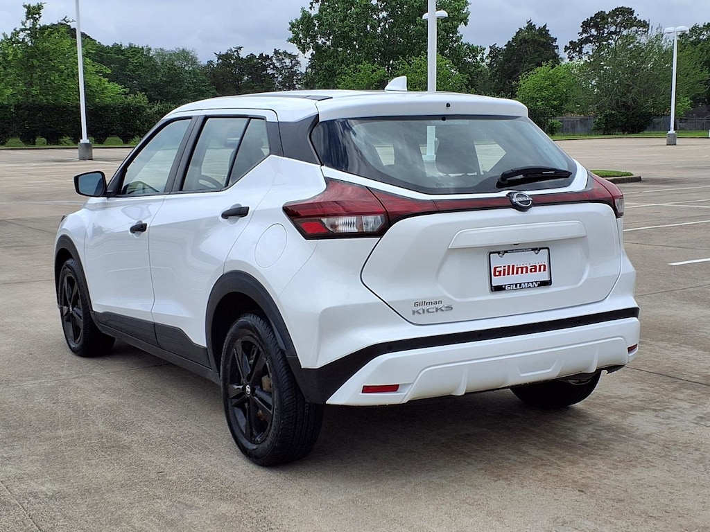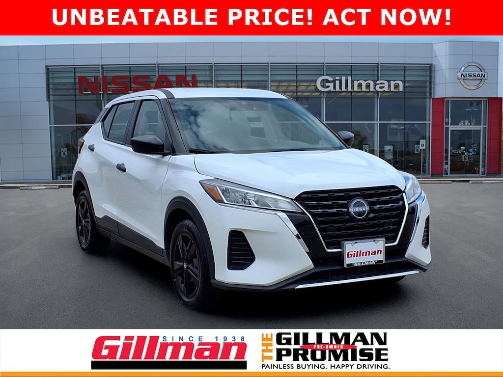 Gillman's Lifetime Engine Warranty lasts as long as you own your vehicle - free with the Gillman Pre-Owned Promise. If the vehicle isn't right for you, return it in purchase condition within 2 days or 200 miles as part of our Happy-Driving Guarantee. Drive in style and confidence with this White 2023 Nissan Kicks S 4dr Crossover! Powered by a fuel-efficient 1.6L I4 engine with Xtronic CVT and front-wheel drive, this Kicks delivers a smooth, reliable ride. Enjoy advanced safety features like Automatic Emergency Braking, Pedestrian Detection, Rear Cross Traffic Alert, Blind Spot Monitoring, and Rear Parking Sensors. Stay connected on the go with a 7-inch touchscreen, Apple CarPlay, Android Auto, Bluetooth, and multiple USB power outlets. Comfort features include height-adjustable driver seat, split-folding rear seats, and generous cargo space. Additional amenities like cruise control, push-button start, keyless entry, and a rearview camera make every drive convenient. Don't miss out on this well-equipped and stylish crossover-visit us for a test drive today! All vehicles subject to prior sale. We are not responsible for typographical errors and may change information without notice. Photos may not depict the actual vehicle. Tax, title, and license fees not included. Dealer Discount available to all buyers.Vehicles purchased from Gillman Automotive Group include a Bring It Back Guarantee: return the vehicle in purchase condition within two days or 200 miles. New current-model-year vehicles and qualifying pre-owned vehicles (under 90,000 miles and less than 7 years old) are eligible. Guarantee is non-transferable and has no cash value. Lifetime Warranty available on select pre-owned vehicles. See dealer for details; restrictions may apply.Certified Pre-Owned