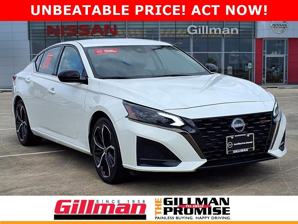 Gillman's Lifetime Engine Warranty lasts as long as you own your vehicle - free with the Gillman Pre-Owned Promise. If the vehicle isn't right for you, return it in purchase condition within 2 days or 200 miles as part of our Happy-Driving Guarantee. Experience sporty sophistication with the 2024 Nissan Altima 2.5 SR Sedan in striking white. This Altima delivers dynamic performance from its 2.5L I4 engine paired with an Xtronic CVT and sport-tuned suspension for a responsive drive. Standout features include LED headlights and daytime running lights, stylish aluminum alloy wheels, and a leather-wrapped steering wheel with paddle shifters. Stay connected and safe with NissanConnect, Apple CarPlay, Android Auto, Bluetooth, and SiriusXM Satellite Radio. Advanced safety technologies like Front and Rear Automatic Emergency Braking, Blind Spot Warning, Rear Cross Traffic Alert, and Pedestrian Detection ensure peace of mind. Enjoy comfort with an 8-way power adjustable driver's seat, dual-zone climate control, and 60/40 split rear seats for versatile cargo space. Remote engine start, push-button start, proximity entry, and a rearview camera add convenience to every journey. Discover the perfect blend of style, technology, and safety in this well-equipped Altima SR. All vehicles subject to prior sale. We are not responsible for typographical errors and may change information without notice. Photos may not depict the actual vehicle. Tax, title, and license fees not included. Dealer Discount available to all buyers.Vehicles purchased from Gillman Automotive Group include a Bring It Back Guarantee: return the vehicle in purchase condition within two days or 200 miles. New current-model-year vehicles and qualifying pre-owned vehicles (under 90,000 miles and less than 7 years old) are eligible. Guarantee is non-transferable and has no cash value. Lifetime Warranty available on select pre-owned vehicles. See dealer for details; restrictions may apply.Certified Pre-Owned