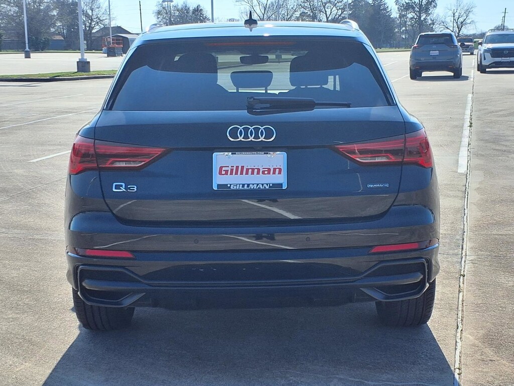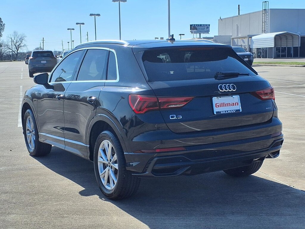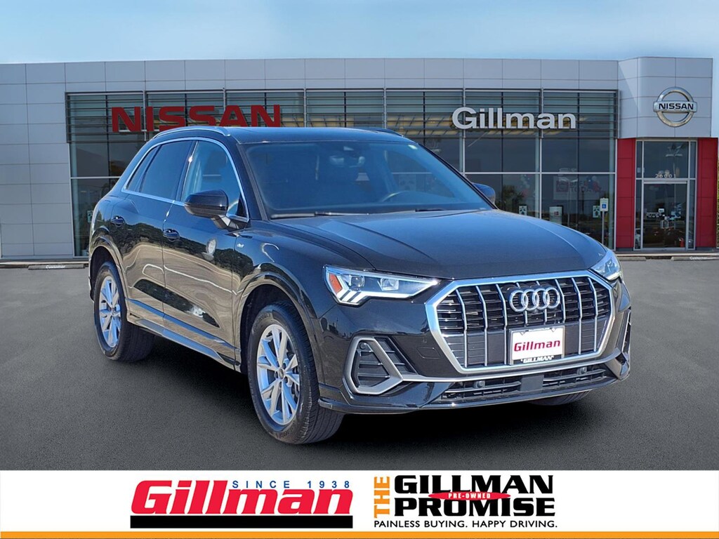 Gillman's Lifetime Engine Warranty lasts as long as you own your vehicle - free with the Gillman Pre-Owned Promise. If the vehicle isn't right for you, return it in purchase condition within 2 days or 200 miles as part of our Happy-Driving Guarantee. Drive in style and confidence with this Black 2022 Audi Q3 AWD 2.0T quattro Premium Plus S line 45 TFSI SUV. Combining sporty design with luxurious comfort, this Q3 features a powerful 2.0L Turbo I4 engine, 8-speed shiftable automatic transmission, and Audi's renowned quattro all-wheel drive for superior traction. Enjoy advanced safety with Front Automatic Emergency Braking, Lane Keeping Assist, Adaptive Cruise Control, Blind Spot Monitoring, and Rear Cross Traffic Alert. Inside, you'll find leather upholstery, heated front seats, a panoramic sunroof, and a high-tech infotainment system with Apple CarPlay, Android Auto, and Audi MMI Connect. The vehicle also offers a surround view camera, power-operated rear liftgate, and aluminum alloy wheels for added convenience and style. With features like wireless charging, power-adjustable seats, and ambient lighting, this Audi Q3 delivers a premium driving experience. Don't miss your chance to own a luxury SUV that blends performance, safety, and innovation. All vehicles subject to prior sale. We are not responsible for typographical errors and may change information without notice. Photos may not depict the actual vehicle. Tax, title, and license fees not included. Dealer Discount available to all buyers.Vehicles purchased from Gillman Automotive Group include a Bring It Back Guarantee: return the vehicle in purchase condition within two days or 200 miles. New current-model-year vehicles and qualifying pre-owned vehicles (under 90,000 miles and less than 7 years old) are eligible. Guarantee is non-transferable and has no cash value. Lifetime Warranty available on select pre-owned vehicles. See dealer for details; restrictions may apply.