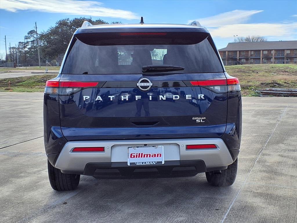 Gillman's Lifetime Engine Warranty lasts as long as you own your vehicle - free with the Gillman Pre-Owned Promise. If the vehicle isn't right for you, return it in purchase condition within 2 days or 200 miles as part of our Happy-Driving Guarantee. Experience the perfect blend of style, comfort, and advanced technology with this Blue 2025 Nissan Pathfinder SL SUV. Powered by a robust 3.5L V6 engine paired with a smooth 9-speed automatic transmission, this Pathfinder delivers both power and efficiency. The SL trim pampers you with leather-trimmed upholstery, heated front seats, a heated steering wheel, and a power-operated rear liftgate for added convenience. Stay seamlessly connected with a 9-inch touchscreen NissanConnect infotainment system, wireless Apple CarPlay, Android Auto, and built-in Wi-Fi hotspot. Safety is prioritized with advanced features like front and rear automatic emergency braking, blind spot monitoring, lane keeping assist, rear cross traffic alert, and a surround view camera system. Enjoy extra versatility with three rows of seating, power-adjustable driver and passenger seats, and multiple USB/USB-C outlets throughout all rows. This Pathfinder is ready for family adventures and daily commutes alike. Don't miss your chance to own a modern SUV loaded with luxury, tech, and peace of mind! All vehicles subject to prior sale. We are not responsible for typographical errors and may change information without notice. Photos may not depict the actual vehicle. Tax, title, and license fees not included. Dealer Discount available to all buyers.Vehicles purchased from Gillman Automotive Group include a Bring It Back Guarantee: return the vehicle in purchase condition within two days or 200 miles. New current-model-year vehicles and qualifying pre-owned vehicles (under 90,000 miles and less than 7 years old) are eligible. Guarantee is non-transferable and has no cash value. Lifetime Warranty available on select pre-owned vehicles. See dealer for details; restrictions may apply.