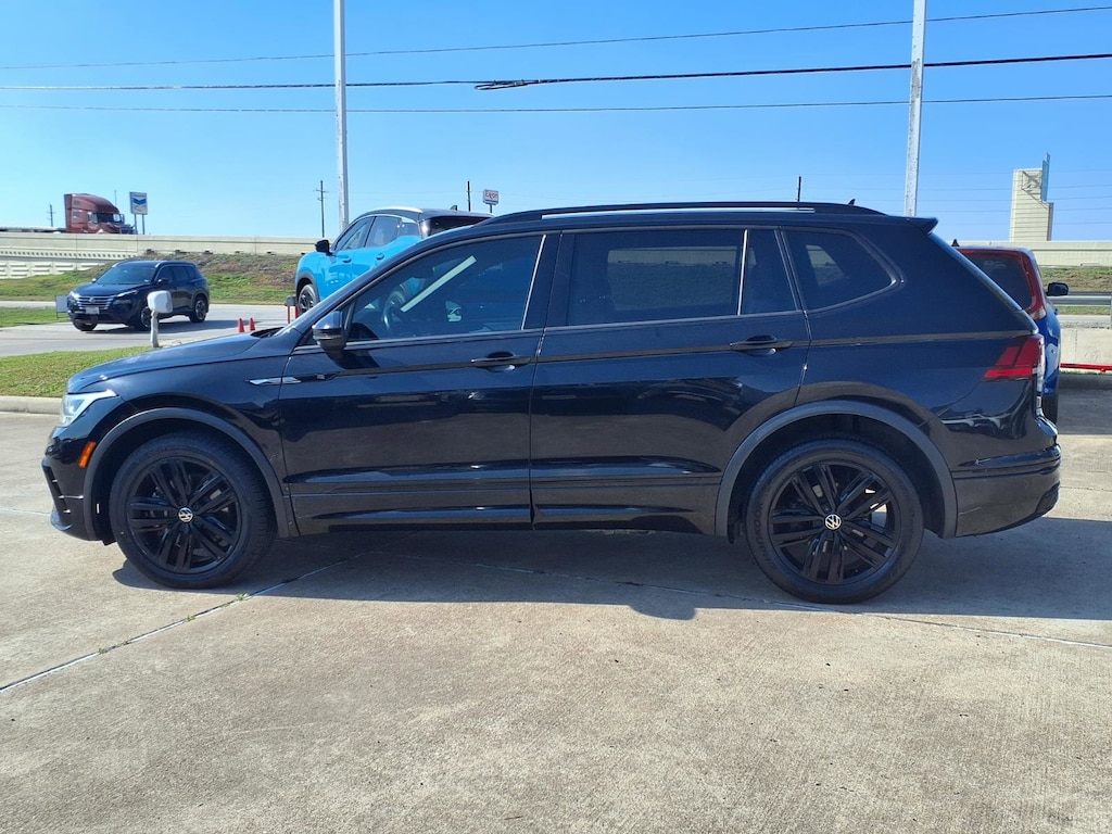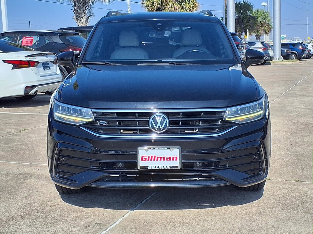 Gillman's Lifetime Engine Warranty lasts as long as you own your vehicle - free with the Gillman Pre-Owned Promise. If the vehicle isn't right for you, return it in purchase condition within 2 days or 200 miles as part of our Happy-Driving Guarantee. Step into style and performance with this Black 2022 Volkswagen Tiguan 2.0T SE R-Line Black SUV. Equipped with a turbocharged 2.0L engine and an 8-speed automatic transmission, it offers an engaging yet efficient drive. Enjoy advanced safety features like Front and Rear Automatic Emergency Braking, Blind Spot Monitoring with Lane Keeping Assist, Rear Cross Traffic Alert, and Adaptive Cruise Control for added peace of mind. The cabin features luxurious leatherette upholstery, a panoramic sunroof, and customizable color ambient lighting. Stay connected and entertained with an 8-inch touchscreen, Apple CarPlay, Android Auto, Amazon Alexa compatibility, Bluetooth, Wi-Fi hotspot, and SiriusXM radio. Convenience is at your fingertips with remote engine start, power liftgate, push-button start, and wireless charging. The Tiguan's third-row seating, split folding seats, and ample cargo space ensure comfort and versatility for family and friends. With sophisticated black styling, LED lighting, and R-Line accents, this Tiguan stands out wherever you go. Don't miss your chance to own this feature-packed, stylish SUV-schedule your test drive today! All vehicles subject to prior sale. We are not responsible for typographical errors and may change information without notice. Photos may not depict the actual vehicle. Tax, title, and license fees not included. Dealer Discount available to all buyers.Vehicles purchased from Gillman Automotive Group include a Bring It Back Guarantee: return the vehicle in purchase condition within two days or 200 miles. New current-model-year vehicles and qualifying pre-owned vehicles (under 90,000 miles and less than 7 years old) are eligible. Guarantee is non-transferable and has no cash value. Lifetime Warranty available on select pre-owned vehicles. See dealer for details; restrictions may apply.